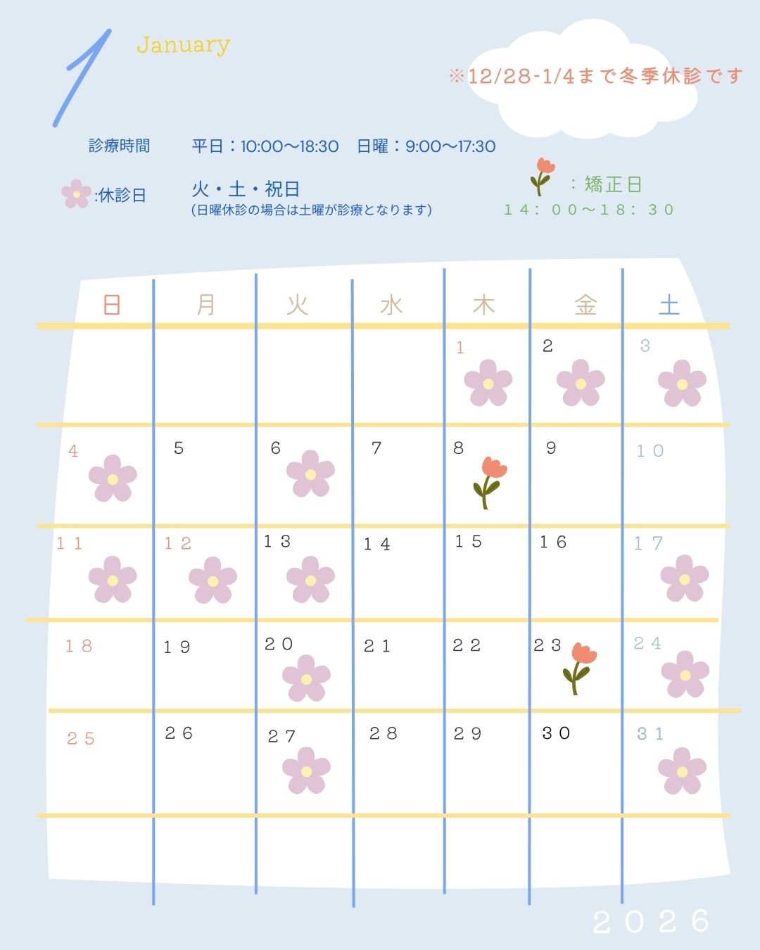 12/28(日)~1/4(日)までは冬季休診とさせていただきます。